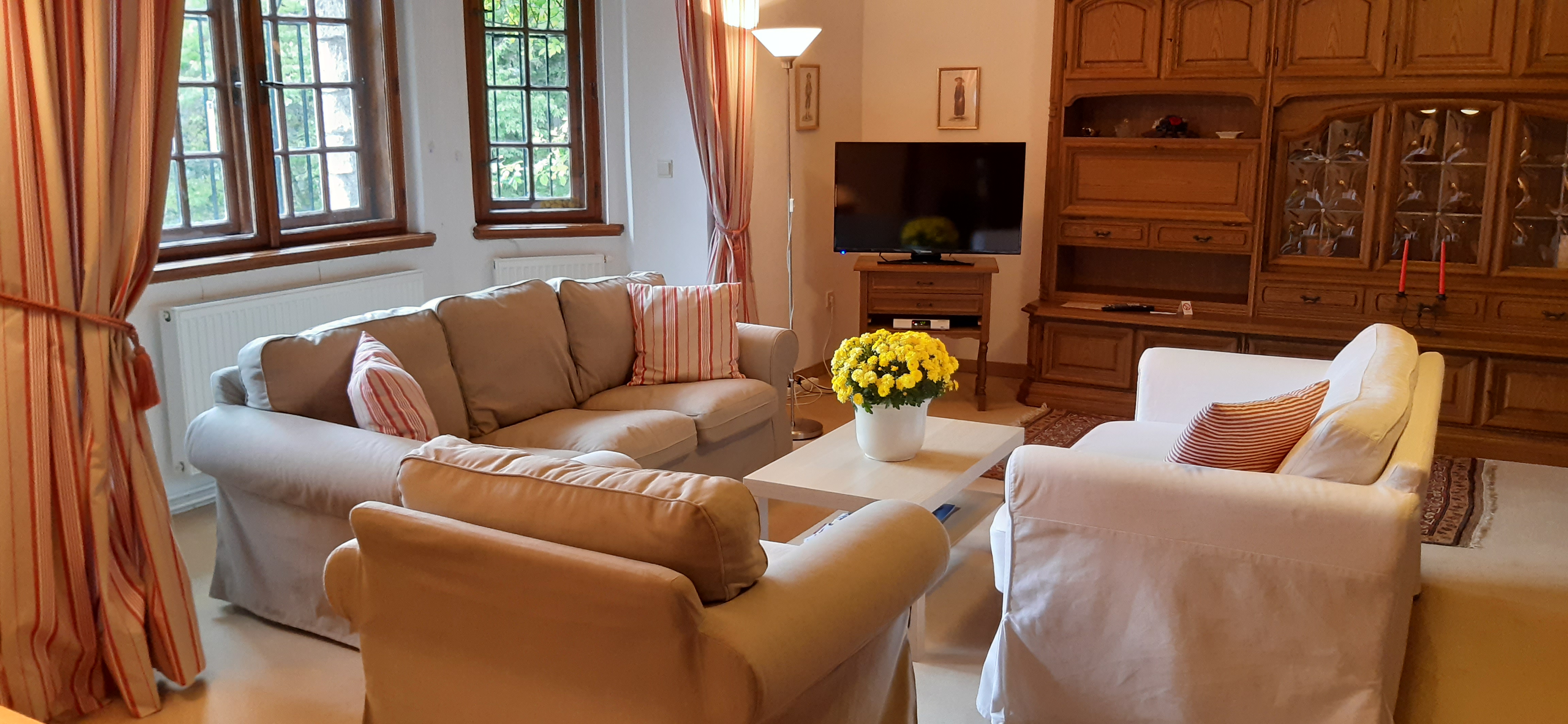 Ebenerdig befinden sich zwei geschmackvoll eingerichtete Ferien-Apartments, die an Gäste, die ein gehobenes Ambiente schätzen, von Mai bis Oktober vermietet werden. Pro Apartment ist auch ein hauseigener Parkplatz vorhanden.